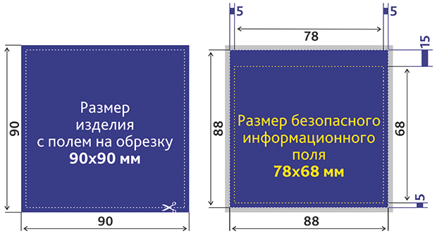 Размер безопасного информационного поля 78x68 мм (где будет текст, логотип);